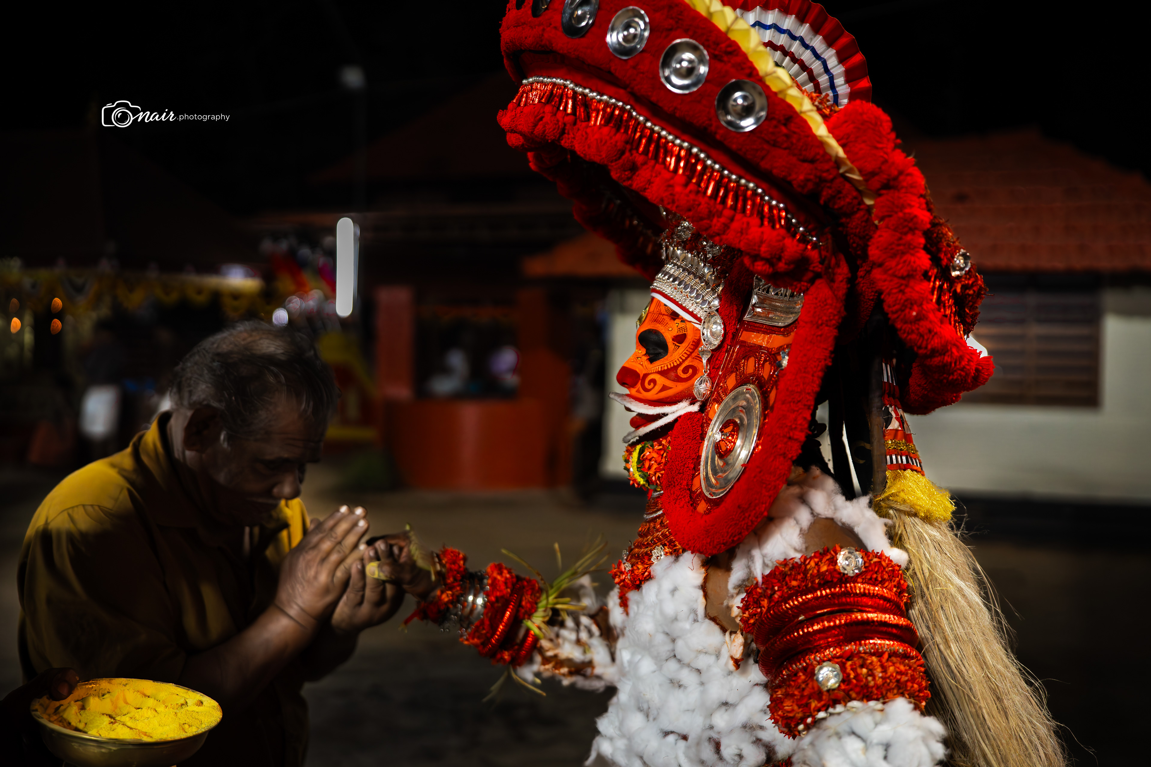 Theyyam is an ancient ritual art form practiced in northern Kerala, especially in the Kannur and Kasaragod regions, dating back over a thousand years. During the performance, the artist is believed to transform into a deity, delivering blessings, prophecies, and judgments to devotees. Known for its elaborate costumes, intense makeup, and fire rituals, Theyyam represents a rare tradition where social hierarchies dissolve and the performer is revered as divine.